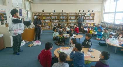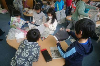 2年生は、新聞紙で防寒具(ダウンベスト)づくりを行いました。3人一組で、1枚のダウンベストを作りました。実際に着心地を確かめてみましたが、かなり温かいのにはびっくりしました。