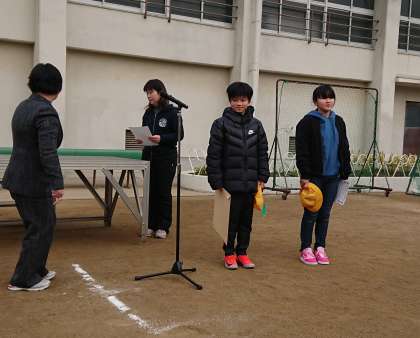 1月28日(月)の全校朝会で、子どもたちの表彰を行いました。