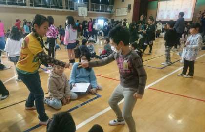 2月7日(木)朝の児童集会は、集会委員会による「じゃんけんゲーム」で盛り上がりました。「ひよこ」から、じゃんけんで勝てば成長します。「フラミンゴ」になると終了です。