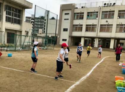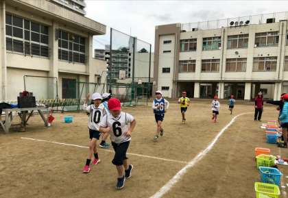 4年生は、チームを組んで、グランド3キロメートルを完走する駅伝大会に向けて練習してきました。本番では、練習の成果があり、それぞれすばらしいタイムで走りきることができました。