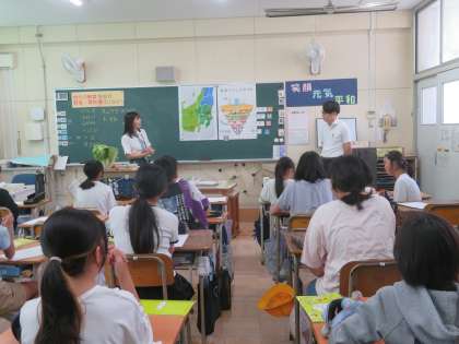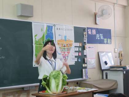 総合的な学習の時間に取り組んでいる「食」に関する学習の一環として、青果物健康推進協会の方に出前授業に来ていただきました。