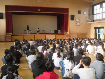 鑑賞後、迫力のある演技に「かっこよかった」「プロの人の演技みたいだった」という声も聞かれ、中学生の力を感じることができた良い小中交流となりました。