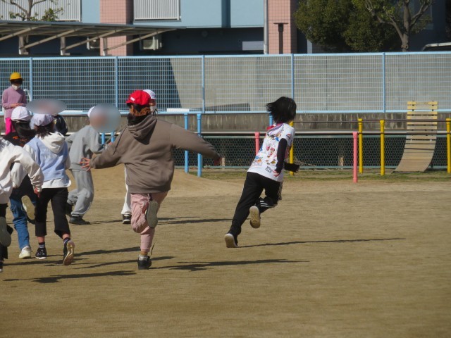 後半は、5年2組全員が鬼になって運動委員会を追いかけました。さすが運動委員会。すばやい動きとチームワークで、なかなかタッチされませんでした。