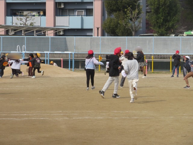今日は、運動委員会と4年2組が鬼ごっこをしました。