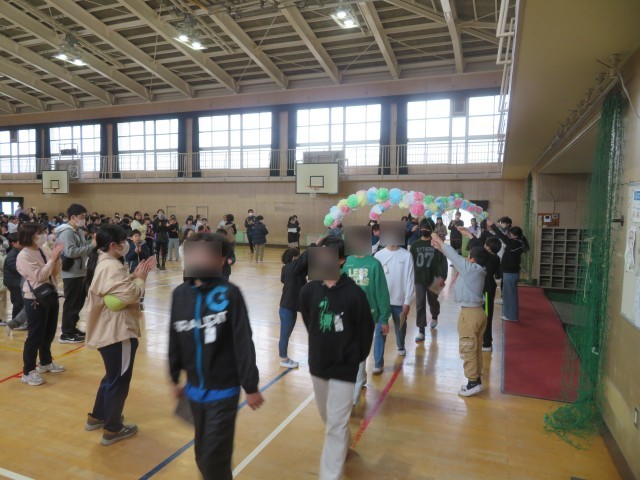 最後は、各学年で花道をつくり、その間を卒業生が通って退場しました。温かな拍手に包まれながら会場を後にする姿は、たいへん感動的でした。