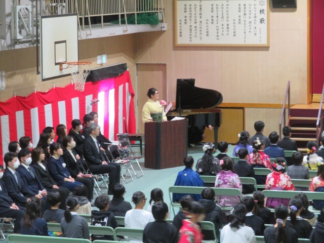 在校生代表の5年生が見守る中、卒業生からの別れの言葉では、これまでの学校生活を振り返りながら、感謝の気持ちと新たな第一歩への決意が語られました。