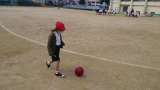 ボールけりの運動をしました。ドリブルをして、ボールをける、止めるなどの動きを身に...
