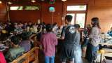 お世話になった旅館「みち潮」を出発するときがきました。 閉舎式を行い、旅館...