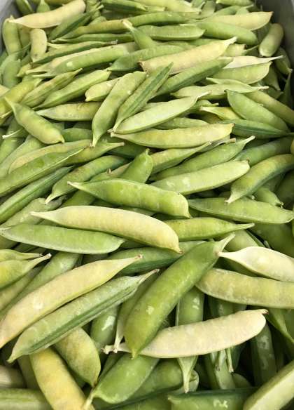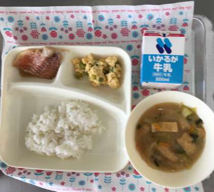 「えんどうのたまごとじ」のえんどう豆は、朝から1つずつ丁寧にさやから出しました。1年に1回、旬のえんどうを使用する春を感じる献立です。