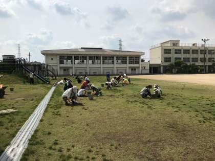 芝生の雑草抜き・肥料まき 6月1日(土)