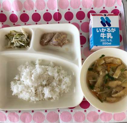 「五目汁」には、うすあげ、キャベツ、玉ねぎ、人参、青ねぎ、えのきたけが入っています。