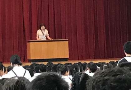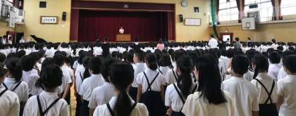 1学期で転任する先生のお話もあり、生活指導の先生からは夏休みの生活についてのお話がありました。
