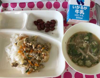 「きんときまめの煮物」は大桐小学校では、焼き物機を使います。ふっくらとやわらかく仕上がりました。