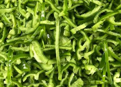 今日の「鶏肉のごまだれ焼き」には、ピーマンと玉ねぎが入っています。