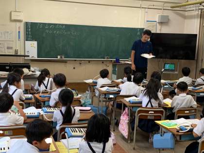 けんばんハーモニカの練習をしました。