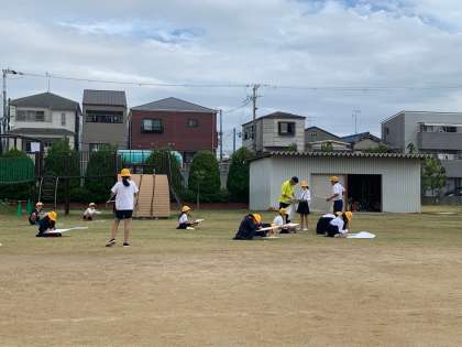 運動場から校舎や遊具などを写生しました。