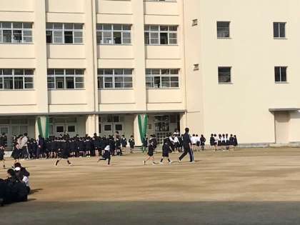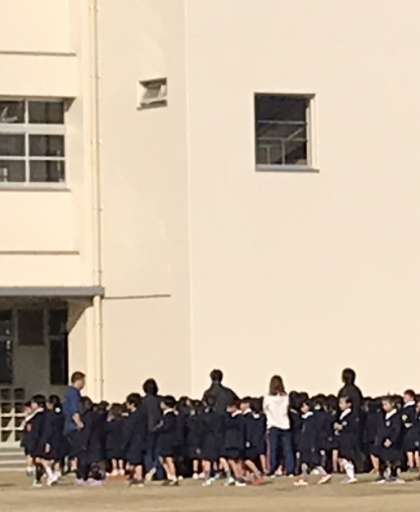 今日は、午後から全学年で北校舎から集合写真を写しました。