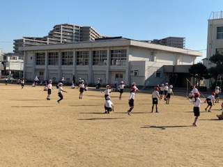 今日の体育は、なわとびです。
