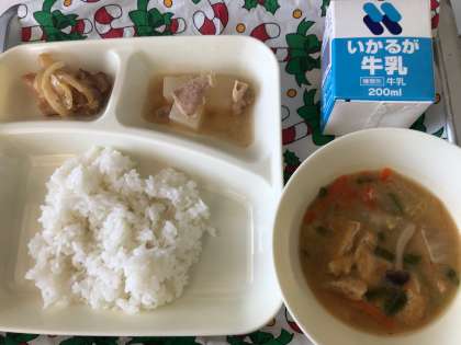 「鶏肉の甘辛焼き」は、毎回、児童に好評な献立です。鶏肉に料理酒、砂糖、みりん、こいくちしょうゆで下味をつけ、玉ねぎを混ぜ合わせて、焼き物機で焼いています。