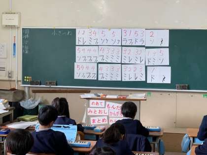 「小ぎつね」の鍵盤ハーモニカの練習に取り組んでいます。指づかいなど一生懸命練習に取り組んでいました。