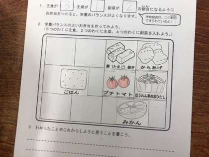栄養バランスについて学び、それを生かしてお弁当作りを考えました。