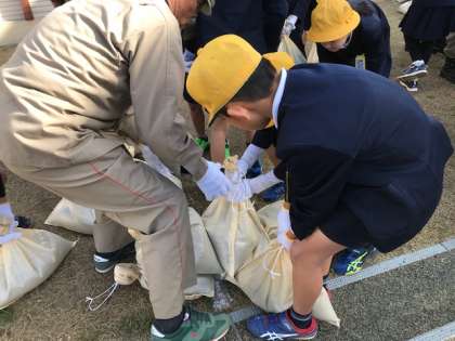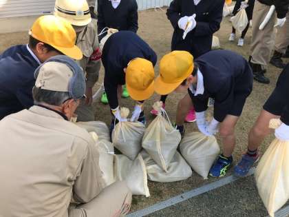 土のう袋を積む作業も重くても、しっかり積んでいました。
