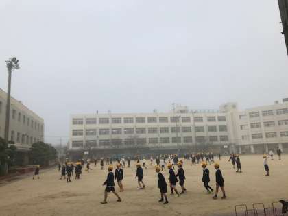 今朝は霧がかかっていて、もやっとしていましたが、登校してくるとすぐに運動場に出て、たくさんの児童が遊んでいました。