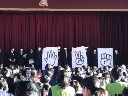 児童集会は、集会委員会が担当で「ジャンボじゃんけん大会」です。