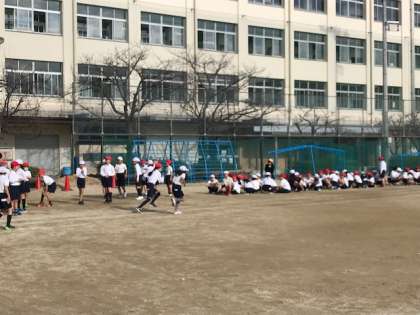 運動場では、ソフトボール投げと50メートル走をしていました。