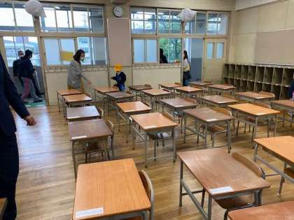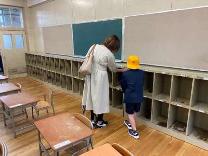 オリエンテーション後は教室や座席、ロッカーを確認するため順番に教室見学をしました。来週の登校日から自分が座る席を確認して、とても嬉しそうな表情をしているのが印象的でした。