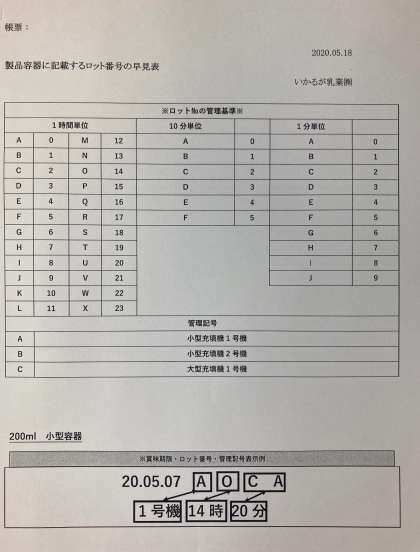 給食の牛乳は、今までは賞味期限だけだったのですが、ロット番号が入りました。