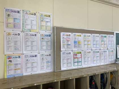 5年生の教室は「ぼく わたしの ベスト3」を掲示しています。さすがは高学年!色も綺麗に塗ってあり鮮やかな感じで教室が明るく感じられます。