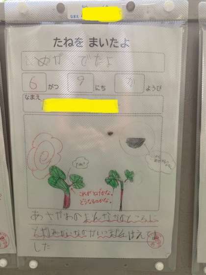1年生横の階段に掲示しています。雨が多く湿っぽい6月ですが、可愛い絵を見ていると元気が出てきます。ご来校の際はぜひご覧ください。また、アサガオの水やりと観察も頑張って続けています。