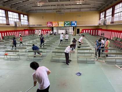 今日は職員全員で講堂の準備をしたり校舎内の掃除を