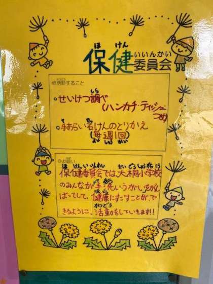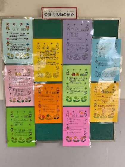 各委員会の活動が始まりました。大桐小学校には10個の委員会があります。それぞれお仕事の時間等が決まっていて校内放送をしたり教室に清潔検査に行ったりします。まずは、最初の活動として内容などを記載したポスターを作って職員室横の掲示板に貼っています。