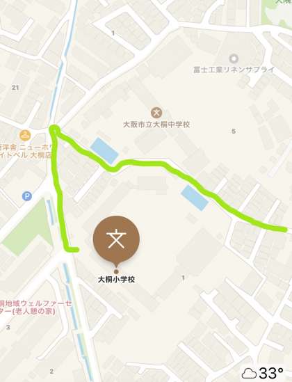 マーカーを引いている大桐小と大桐中の間の道ですが、細いうえに曲がっていますので、広がって歩行すると自転車や自動車などの通行の妨げになるだけでなく、非常に危険ですので、改めて始業式に学校で指導はいたしますが、ご家庭でも話をしていただけると助かります。安全のためよろしくお願いいたします。
