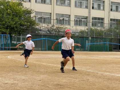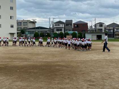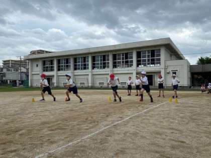 3年生は徒競走の練習をしています。今日は湿度は高めですが日差しも少なく走る練習をするにはよかったです。3年生はトラックを半周走りますが、本番さながらな様子で頑張っていました。