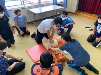 東淀川消防署による教職員対象の救命講習会が行われました。今年度は感染症予防のため2日間に分けて実施しました。