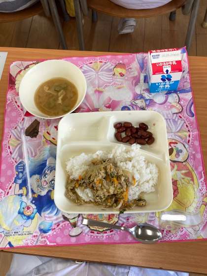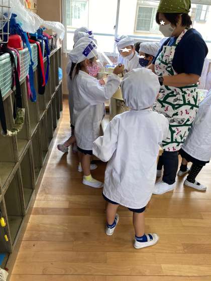1年生は給食を配ることにも慣れてきて、用意するスピードがだんだんと速くなってきました。