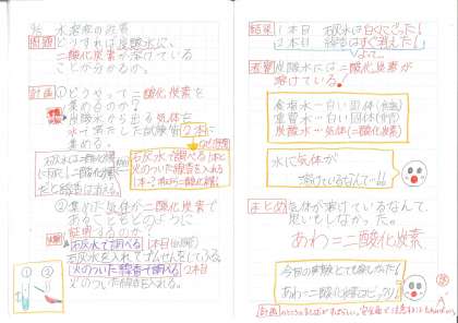 6年生 理科ノート「炭酸水から二酸化炭素を取り出す実験」