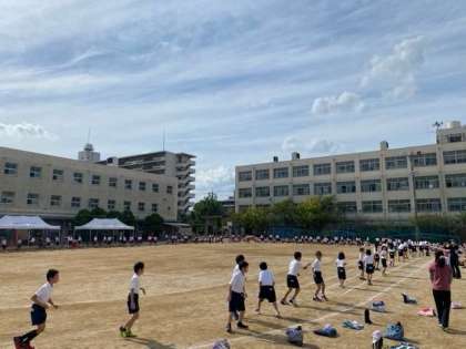 今日は初めて2学年で練習を行いました。”走”や”演技”など各学年の持ち時間の中でいかにスムーズに進めることができるか。今日は大きなトラブルやけがもなく児童の機敏な動きのおかげで時間内に終えることができました。