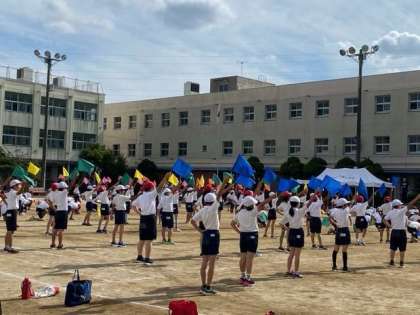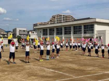 4年生は色とりどりのフラッグを使ってピタッとそろったダンスを見せてくれました。フラッグを振った時にでる「バシッ」「ブンッ!」という音が素敵で鳥肌がたちました。