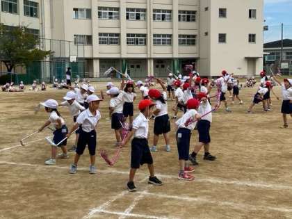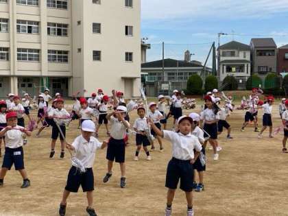 お互いの演技や競技を見ながら本番に向けて動きをチェックしました。本番で使う道具も持って演技しましたので、凄く華やかで可愛い様子を見ることができました。