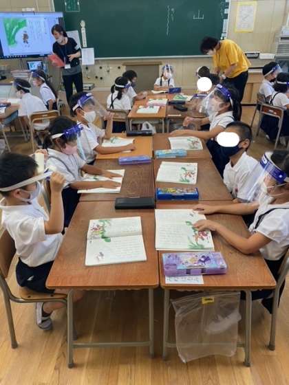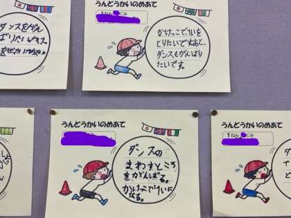 「大きなかぶ」の学習でグループ読みをするために誰がどこを読むか話し合いをしてから活動に入ります。「うんとこしょ!どっこいしょ!!」ご家庭でも聞いてあげてください。また、体育参観のめあてが掲示してありました。