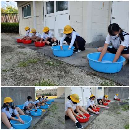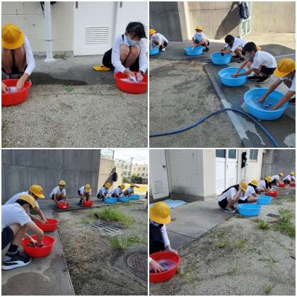 今日は、家庭科の学習で、洗たくの実習をしました。