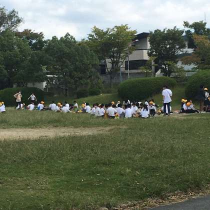 今日は遠足、お天気も最高の秋晴れです。南千里駅の近くにある千里南公園に来ていますが自然豊かで緑もいっぱいの整備された公園です。そして今からお弁当タイムです。朝早くからのお弁当作りありがとうございます。