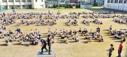 大桐小学校は、先生たちも身体をはって仕事をしています。