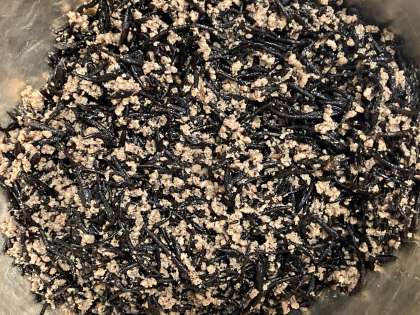 「牛ひじきそぼろ」は、牛ひき肉とひじきを甘辛く味付けし、ごはんに添えます。みじん切りのしょうがで風味をつけています。