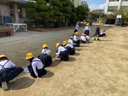 10月14日(水)に理科「日なたと日かげ」の学習で、それぞれの地面の様子を観察しに行きました。