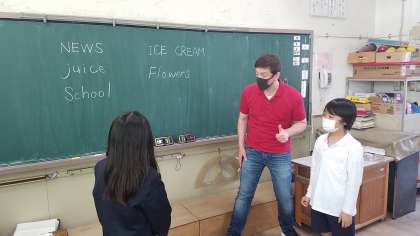 Do you have〜?の話型を使って、会話を進めていきますが、緊張が画像からも伝わってきますね。